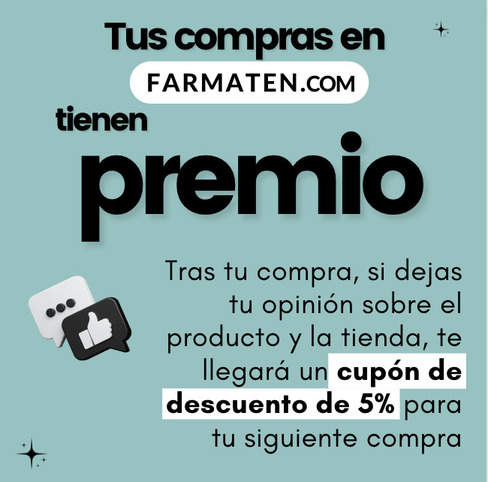 Después de realizar tu compra en Farmaten, recibirás un correo electrónico que te invitará a compartir tu opinión sobre tu experiencia. Al compartir tu opinión a través del enlace proporcionado en el correo electrónico, recibirás tu cupón de descuento del 5% que podrás aplicar en tu siguiente compra.
