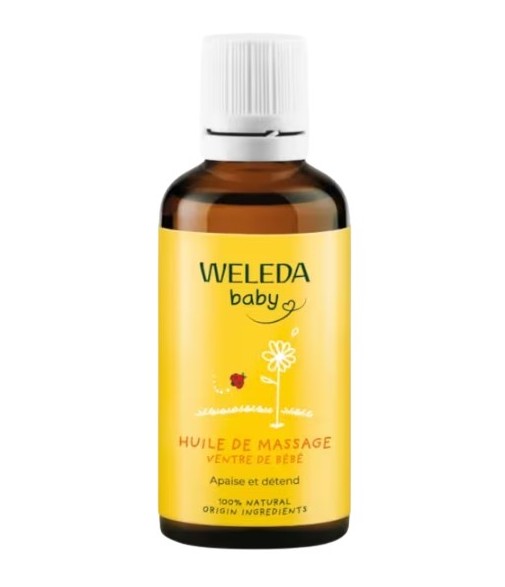 Natural body oil for abdominal massage, helps relieve baby's digestive discomfort.