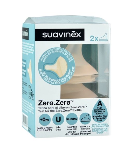 Suavinex ultra-soft silicone teat imitates the length, shape and feel of the mother's nipple. Suitable for the Zero.Zero bottle.