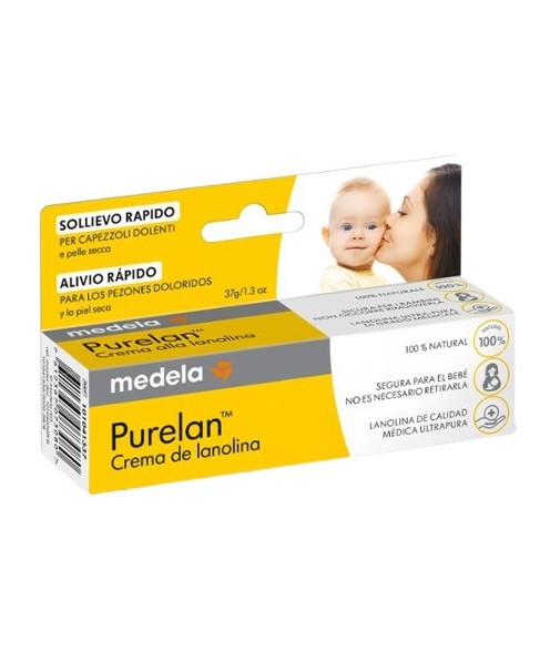 Purelan Lanolin Cream provides fast relief for cracked nipples and dry skin. It is 100% natural so there is no need to remove it before breastfeeding.