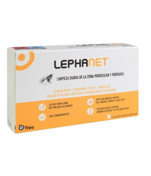 Lephanet are sterile wipes for daily use, indicated for cleansing the eyelids and surrounding area. They clean impurities and makeup, remove dust and pollen, and are also used for allergies, eyelid secretions, and eyelid infections or inflammation.
