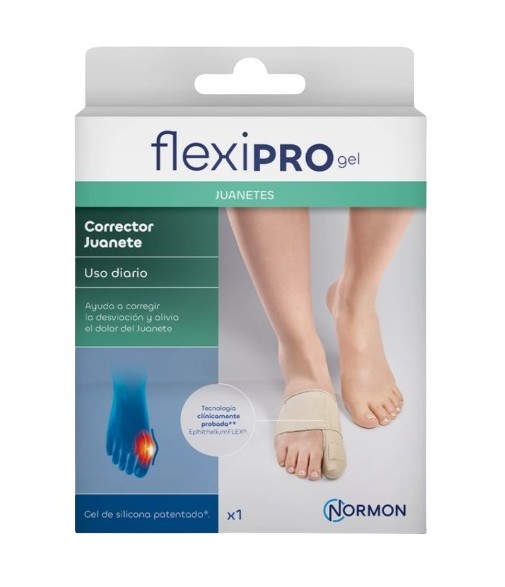 Flexible silicone corrector that relieves pressure and rubbing of the bunion, helping to improve toe alignment and providing comfort during daily use.