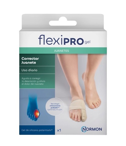 Flexible silicone corrector that relieves pressure and rubbing of the bunion, helping to improve toe alignment and providing comfort during daily use.