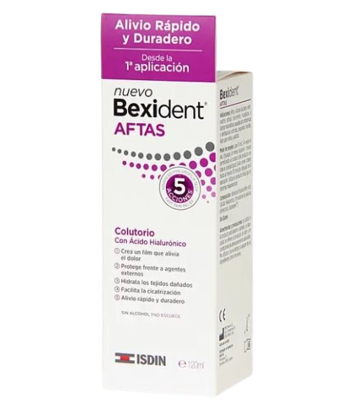 Bexident Aftas Mouthwash is a mouthwash with Hyaluronic Acid that relieves pain caused by rubbing, sores or wounds caused by wearing braces or dentures.