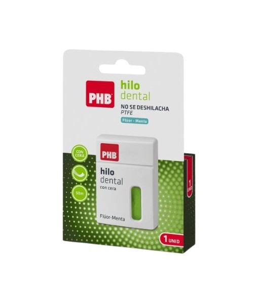 PHB PTFE Dental Floss with Wax, Fluoride and Mint for hygiene of interdental spaces.