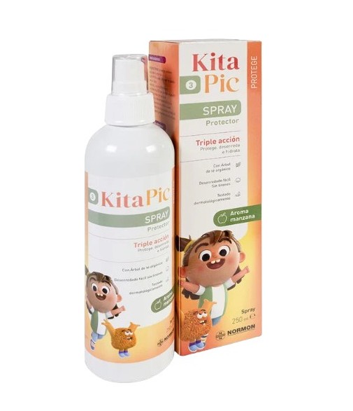 250ml hair spray, formulated for the treatment of lice and nits with a gentle insecticidal action, easy to apply and apple aroma.