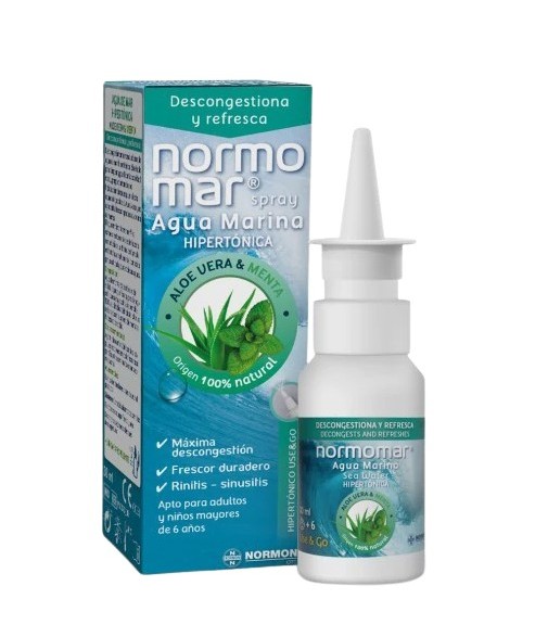 Nasal spray with hypertonic seawater, aloe vera and mint that helps to decongest the nose, moisturize the mucous membrane and provide an immediate feeling of freshness.