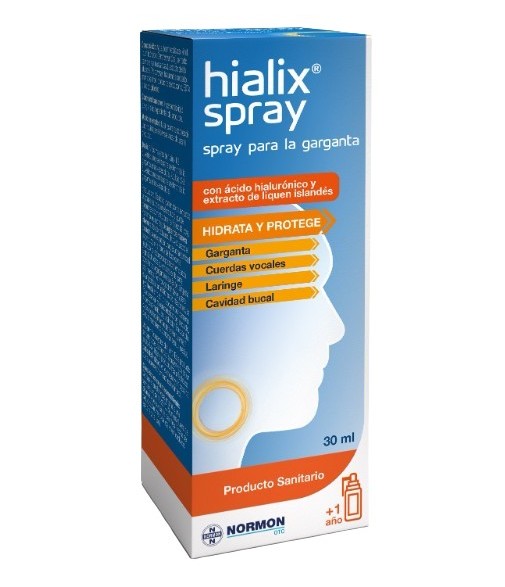 Oropharyngeal spray with hyaluronic acid that moisturizes, protects and relieves throat irritation, helping to soothe dryness, itching and discomfort when swallowing.