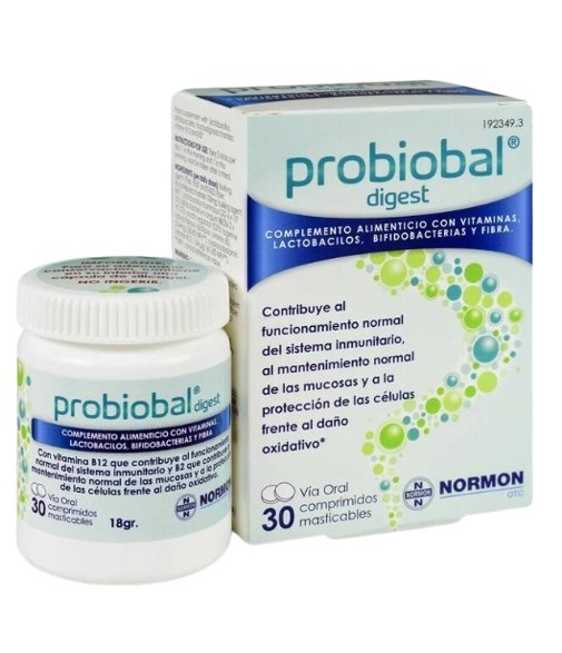 Chewable probiotic that promotes digestion and balances intestinal flora, helping to reduce digestive discomfort such as gas or heaviness.