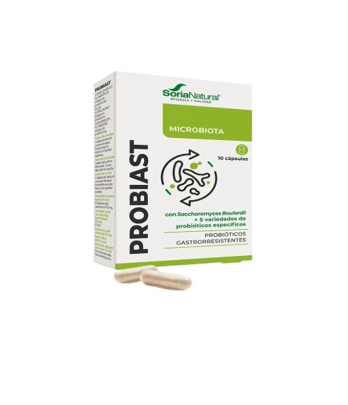 Probiotic dietary supplement that combines six strains of Lactobacillus with Saccharomyces cerevisiae var. boulardii, formulated to regulate, restore, and replenish intestinal flora. Its purpose is to relieve discomfort such as diarrhea, constipation, gas, gastritis, and bloating thanks to a double encapsulation that protects the microorganisms until they reach the intestine.