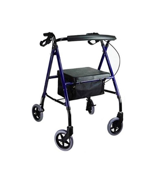 With parking brake ( self-locking ) that provides safety and stability when stopping. It has a seat and a textile basket for storing objects as well as a key-holder zipper.