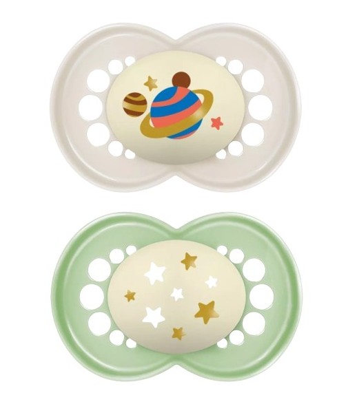 Los chupetes de MAM Perfect Night han sido desarrollados en colaboración con dentistas y ortodoncistas para favorecer el correcto desarrollo de la boca del bebé.