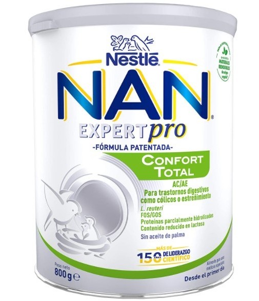 Nan ExpertPro Confort Total A/C A/E 800g es una leche especial para cuando hay trastornos digestivos, cólicos o estreñimiento. Alimento para el bebé desde el primer día.