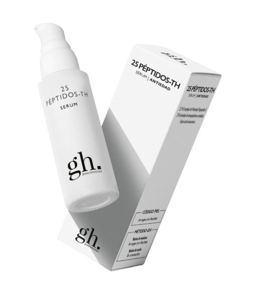 GH 25 Péptidos -TH es un sérum intensivo con propiedades reafirmantes que incrementan la elasticidad y densidad de la piel, asi como reductoras de las arrugas.