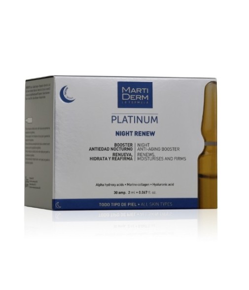 MartiDerm Platinum Night Renew Antiedad Nocturno Renueva Hidrata y Reafirma Todo Tipo de Piel 30 Ampollas