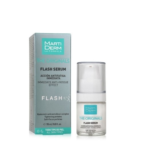 Con el objetivo de eliminar las señales del estrés y la fatiga, MartiDerm ha desarrollado el sérum Flash, un producto con una textura suave que hidrata y estira la piel. Indicado para cualquier tipo de pieles, actúa borrando casi por completo la rugosidad del cutis y logrando un efecto lifting instantáneo.