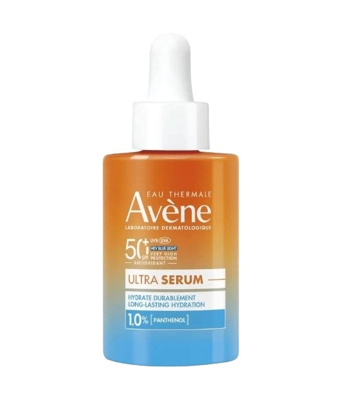 Sérum facial ultraligero con alta protección solar SPF50+, que hidrata intensamente y ayuda a proteger las células frente al daño solar.