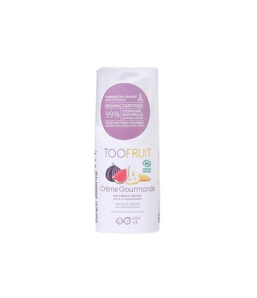 Crema facial nutritiva con extractos de plátano e higo, formulada para hidratar y proteger la piel infantil.