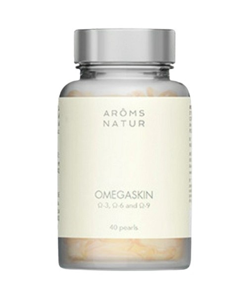 Aroms Natur Omegaskin es un complemento alimenticio que cuida la salud de la piel. Está compuesto por una gran cantidad de aceites esenciales Omega 3, Omega 6 y Omenga 9 que proporciona a la piel un elevado grado de humectación, una textura fina y densa, además de un Ph adecuado.