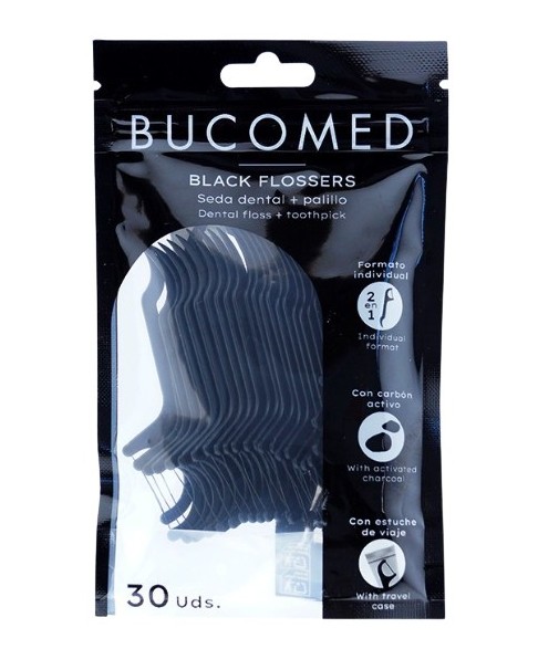 Hilos dentales con carbón activado que ayudan a eliminar placa y restos de comida, contribuyendo a una higiene interdental eficaz y a una sensación de limpieza y frescor.