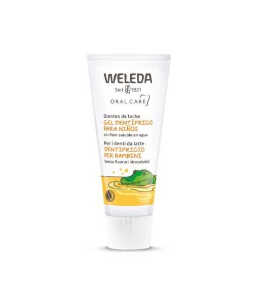 Gel dental suave de origen natural que limpia y protege los dientes de leche.