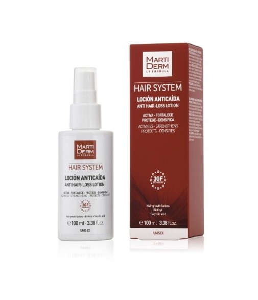 Para cabellos débiles con tendencia a la caída, la loción anticaída Hair System de MartiDerm fortalece la fibra capilar, libera de la grasa y las impurezas los folículos, permitiendo, además, a los cabellos un mejor anclaje al cuero cabelludo que frena, previene la caída y reactiva el crecimiento del cabello.