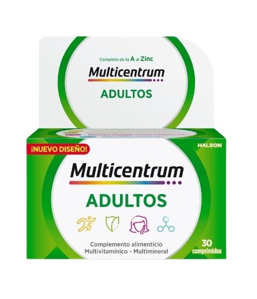 Multicentrum es un complemento alimenticio a base de 13 vitaminas y 11 minerales, especialmente formulado para satisfacer lasnecesidades nutricionales de los adultos y adolescentes a partir de 12 años.