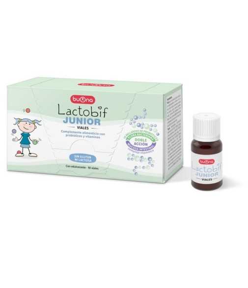 Complemento alimenticio infantil que aporta 10 mil millones de células probióticas por vial, seis cepas y vitaminas que favorecen el funcionamiento normal del sistema inmunitario y el mantenimiento de membranas mucosas, y apoyan el equilibrio de la flora intestinal.