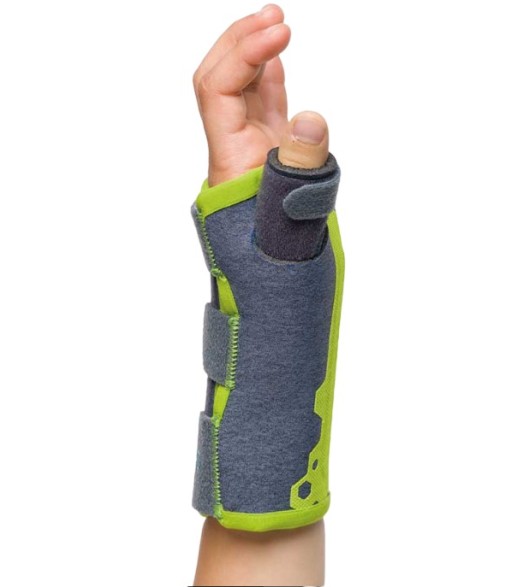 Complemento inmovilizador de pulgar para adaptar a la muñequera. Incorpora una pletina de aluminio confortable y adaptable que permite, según requiera la lesión, inmovilizar la articulación del dedo pulgar.