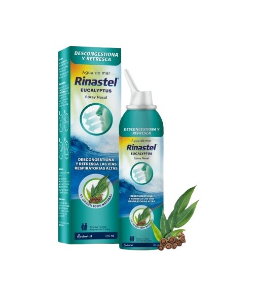 Rinastel Eucalyptus es un spray nasal que descongestiona y refresca las vias respiratorioas altas. Adultos y niños mayores de 3 años.
