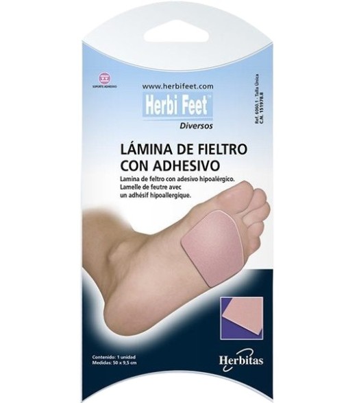 Lámina, cuya función es realizar descargas y almohadillados en callos y durezas plantares y dorsales. Ofrece protección en roces y callos interdigitales.