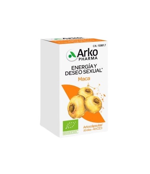 Arkocápsulas Maca es un complemento con extracto de raíz de Maca, revitaliza cuerpo y mente. Aumenta energía, libido y resistencia, ideal para mejorar calidad de vida de forma natural.
